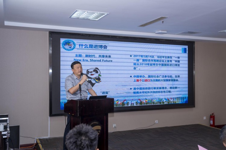 全国城市工业品贸易中心联合会副会长兼秘书长刘恝在活动上介绍了第八届进博会的展区分布、优惠政策及报名注意事项。